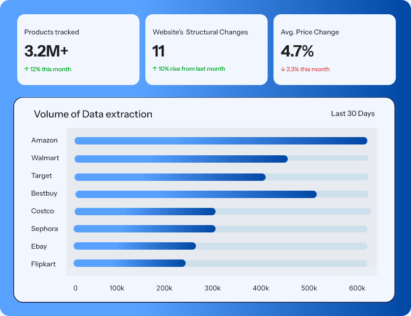 Datahut delivers clean, reliable ecommerce product data, pricing data and other custom data tailored to the exact needs of smart retailers —no noise, no fluff. Our team handles the complexity of web scraping so your team can focus on making smarter, faster decisions.